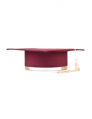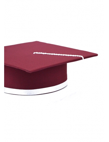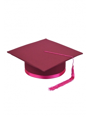Light and elegant cap for graduation, with a special twist. The cherry-colored chrome is one of the finest, and the accent color will transform the festive outfit into a top one. Made of: minimal, cardboard and lining. The ribbon is made of satin. The tassel is made of silk fringes. Cap is lined on the inside.