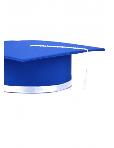Light and elegant cap for graduation, with a special twist. The combination of blue and white expresses dynamism and at the same time offers a modern colour to your outfit.
