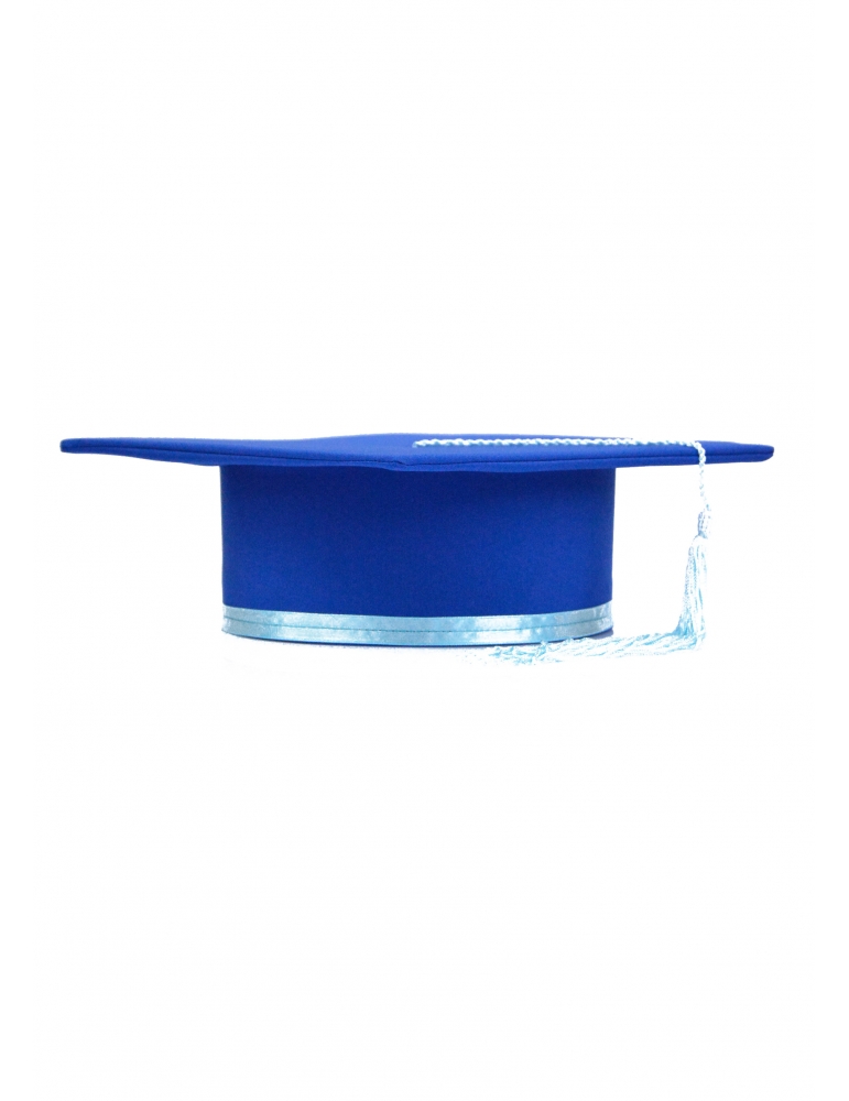 Light and elegant cap for graduation, with a special twist. The chromaticity of the game of blue shades will give you a great look for your outfit.
