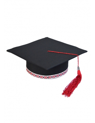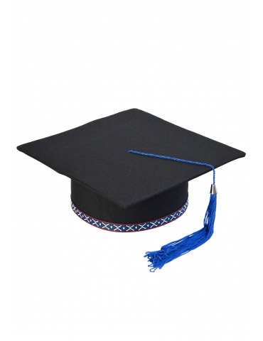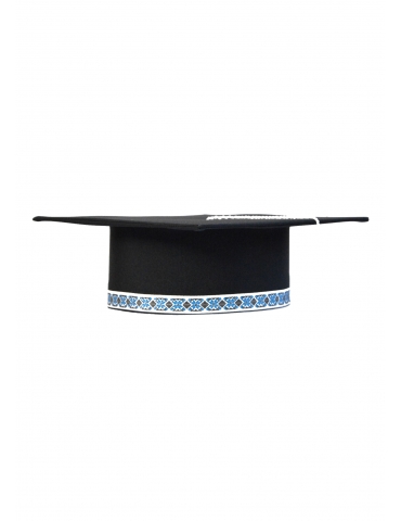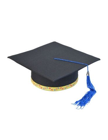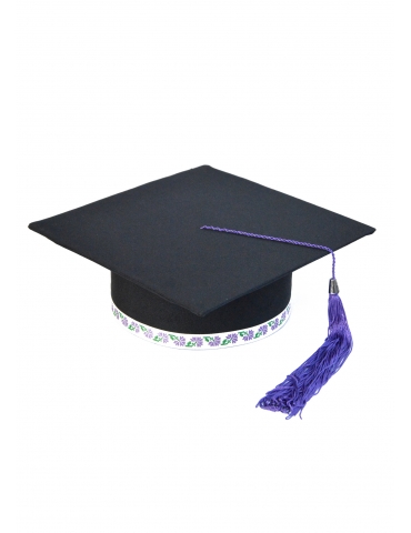 Light and elegant cap for graduation, with a special twist. An outstanding traditional model, representative of any novel. Made of: minimal, cardboard and lining. The ribbon is printed or embroidered depending on the model. The tassel is made of silk fringes. Cap is lined on the inside.
