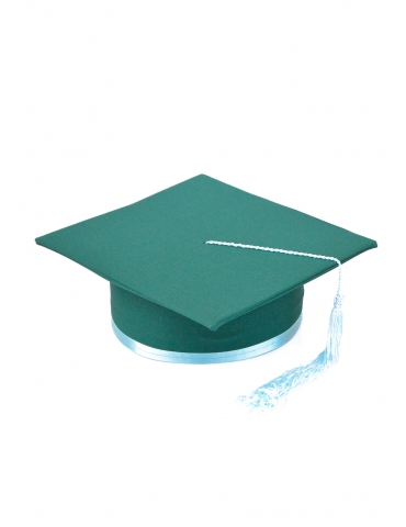 Light and elegant cap for graduation, with a special twist. The greenish color is impressive, and the accent color fills the festive outfit and gives you an impressive air. Made of: minimal, cardboard and lining. The ribbon is made of satin. The tassel is made of silk fringes. Cap is lined on the inside.